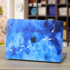 기타노트북액세서리 사과 필기노트 보호케이스 Mac Pro13컴퓨터 macbook12Air13.3inch2019뉴타입 파우치 11.6여성 15.4귀여운 개성, T13-수묵 생선+럭셔리 블루색 커버--비고 규격